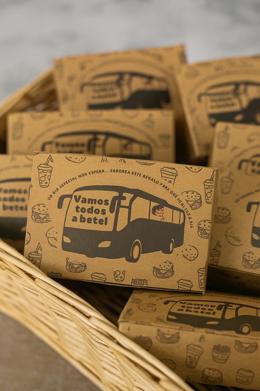 cajita de desayuno o regalo para ofrecer a los que van en autobús a la asamblea
