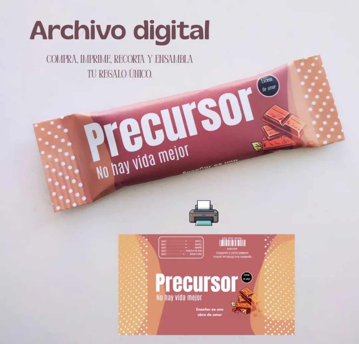 El archivo contiene 1página con 2 diseños del envoltorio para chocolate para imprimir.