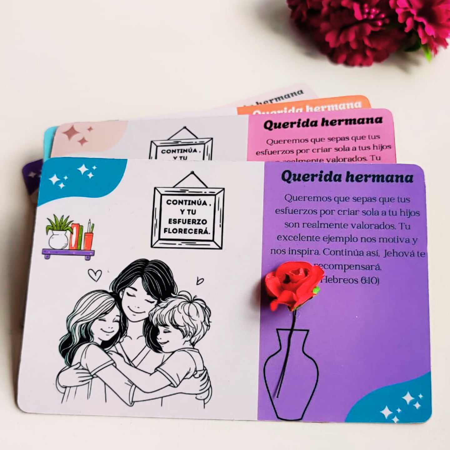 Tarjeta para animar a las madres que crían solas a sus hijos.